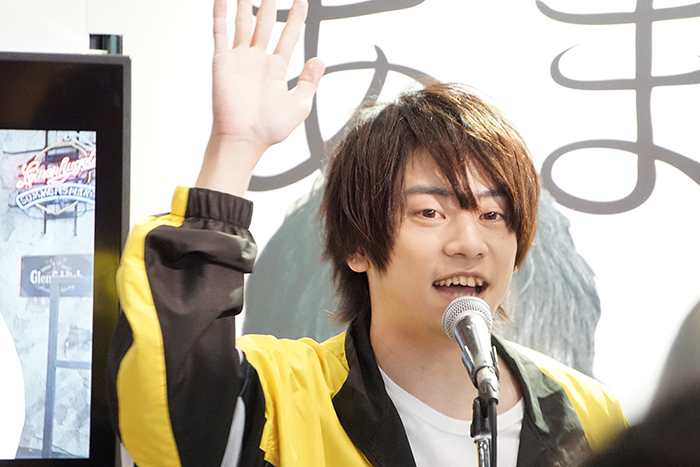 アニメイトブース内の特設ステージに登場した3人は、朝早いにもかかわらず集まっているお客さんたちの数に驚いていました。そんな3人はまずアニメイトブースの紹介からスタート。物販の内容や、この日行われるイベントが紹介されました。話がツキプロのことになると、笹さんは“ツキプロの犬”とお馴染みのキーワードで笑いを誘います。