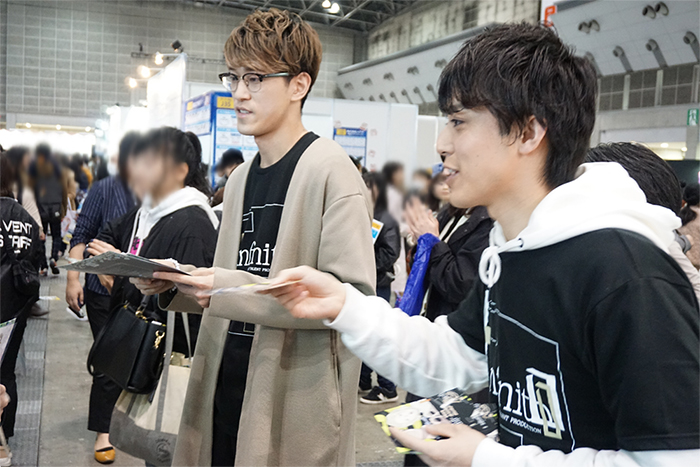 配布会の開始直後は緊張しているような様子だった2人ですが、たくさんのお客さんに手渡しをしていくうちに笑顔に。ファンの方から「応援しています!」と温かい声をかけられ、嬉しそうな2人の姿も見られました。