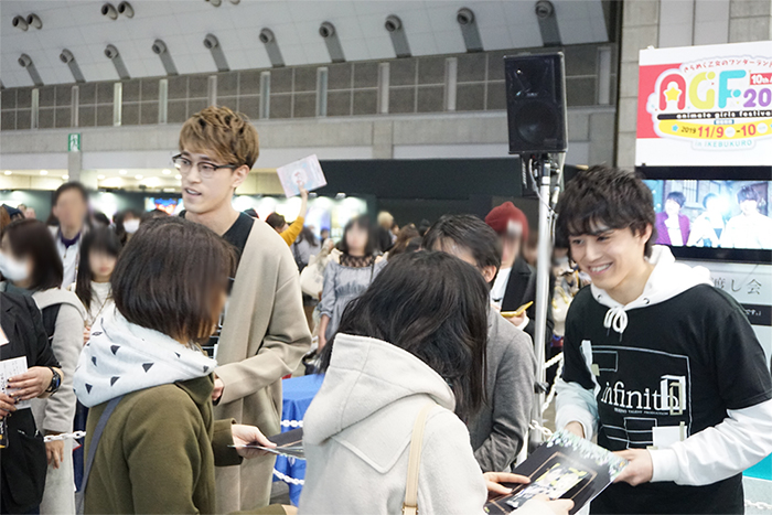 ブースへ現れた2人は、「描き下ろしinfinit0ポストカード」と「ツキプロインフォAnimeJapan 2019特別号」を配布! ちなみに、イラストレーター・さいのすけ先生描き下ろしイラスト&キャラクター・キャストの複製コメント入りポストカードは、この日このイベントだけでの配布となっていました。
