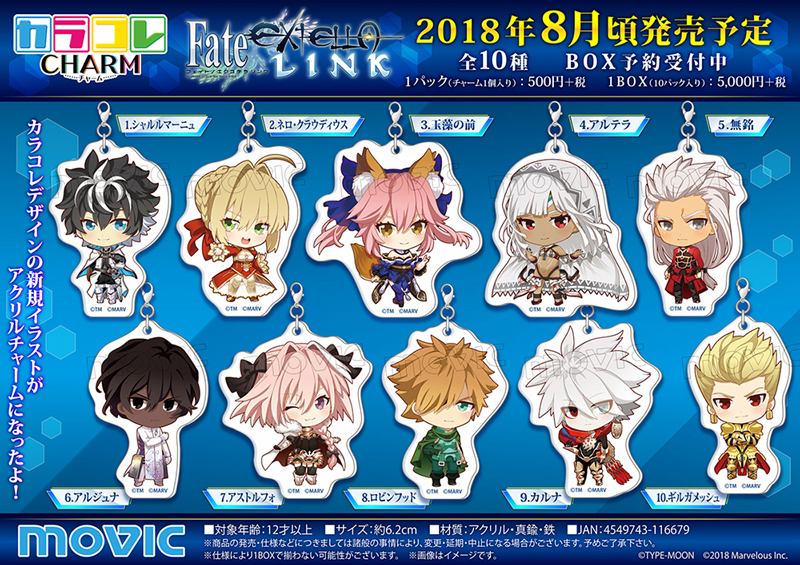 カラコレチャーム『Fate/EXTELLA LINK』(全10種) 2018年8月発売決定!