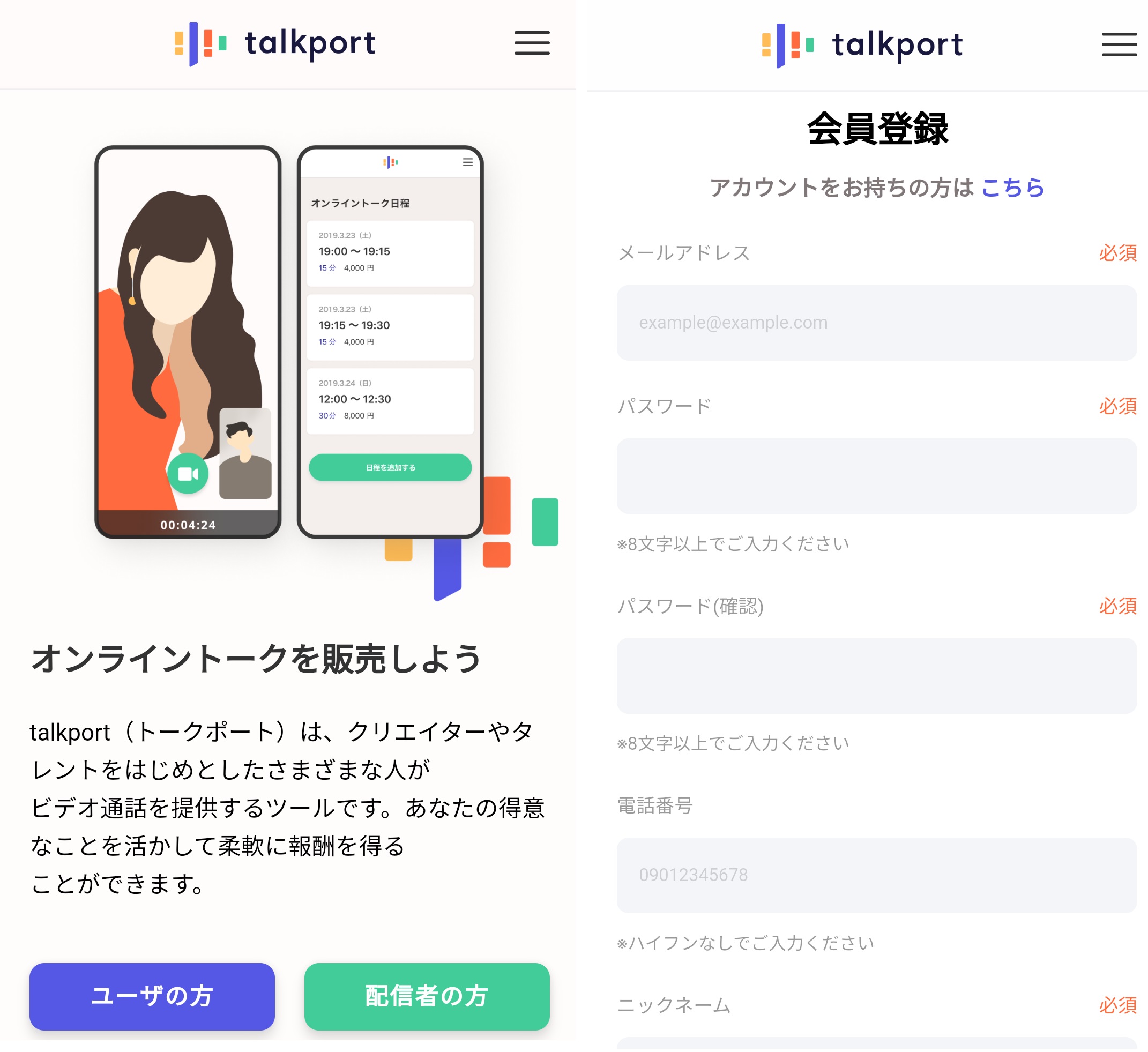 「talkport」の会員登録をする際は、ご本人様確認のため必ず