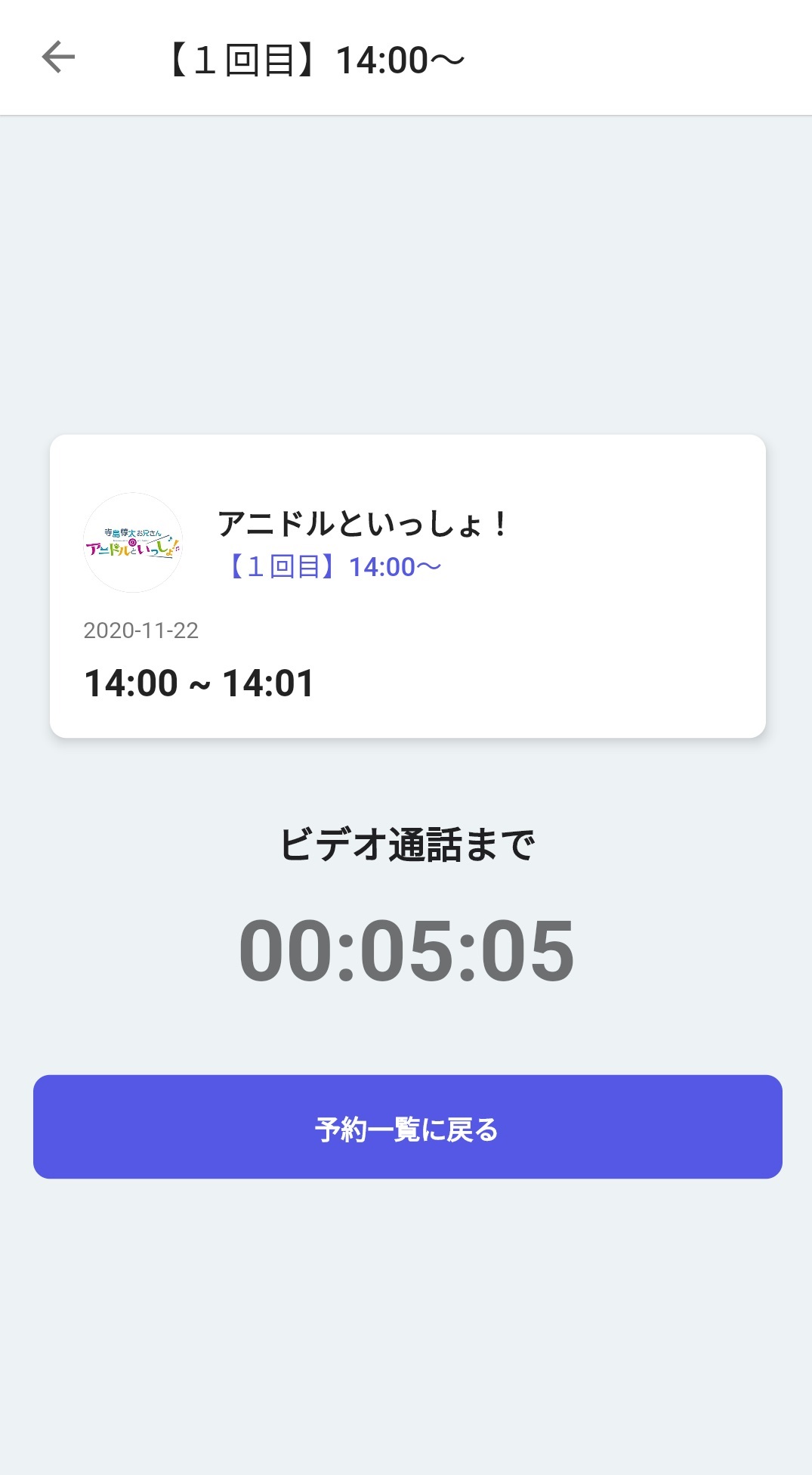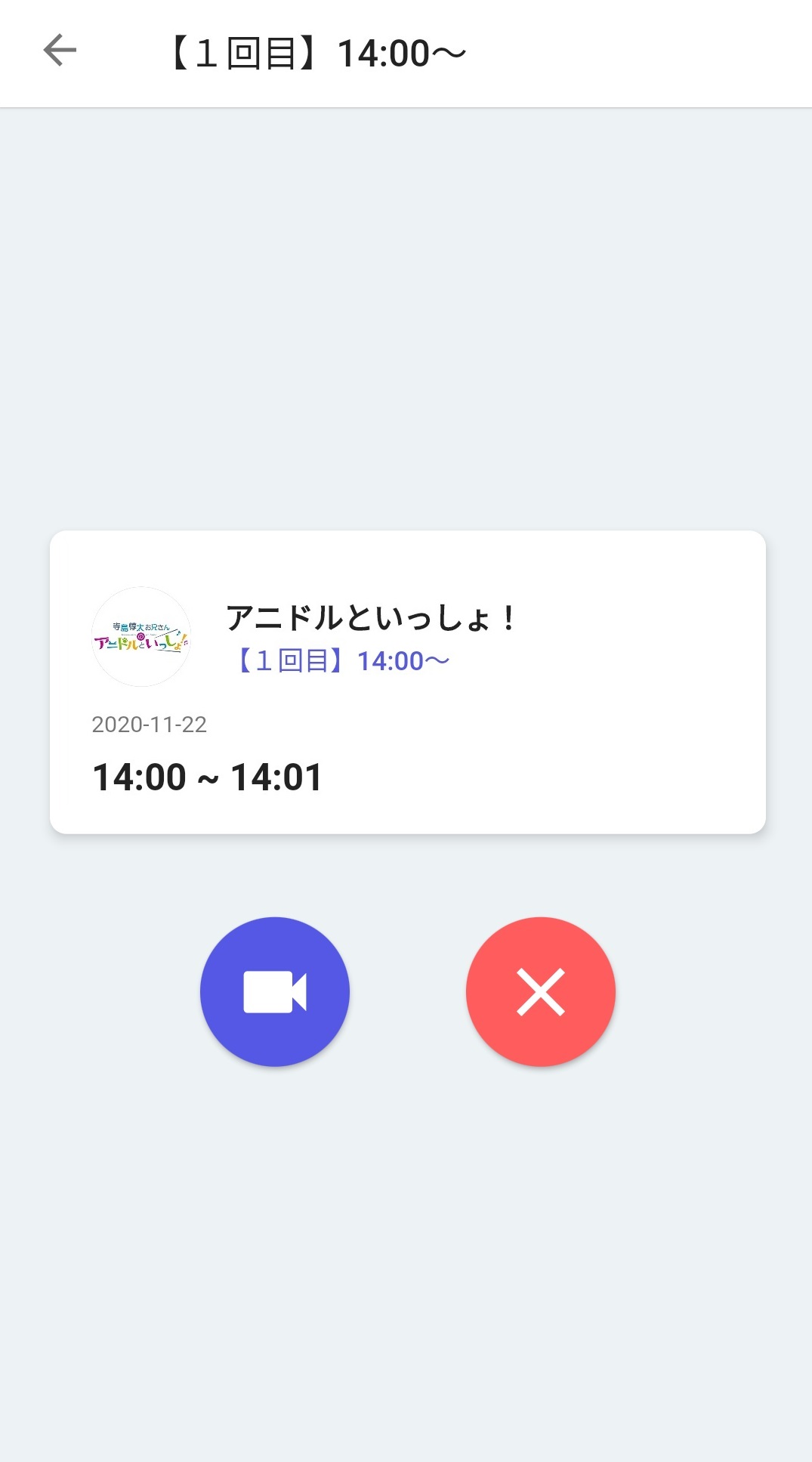 時間になると以下の画面に切り替わります。青いカメラマークをタップしてください。